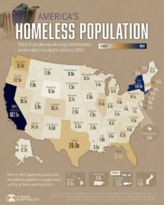 По состоянию на 2024 год в США проживало около 770 тысяч бездомных — больше, чем население Черногории (620 тысяч), но меньше, чем сидит в тюрьмах (около 2 миллионов). Основные места обитания — Калифорния и Нью-Йорк: там чиллит примерно 45% всех бездомных страны. Сколько их в вашем штате — нарисовано на карте👆