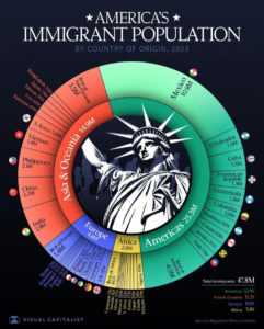 — всего в США около 50 млн мигрантов в первом поколении (14% от общей численности населения);